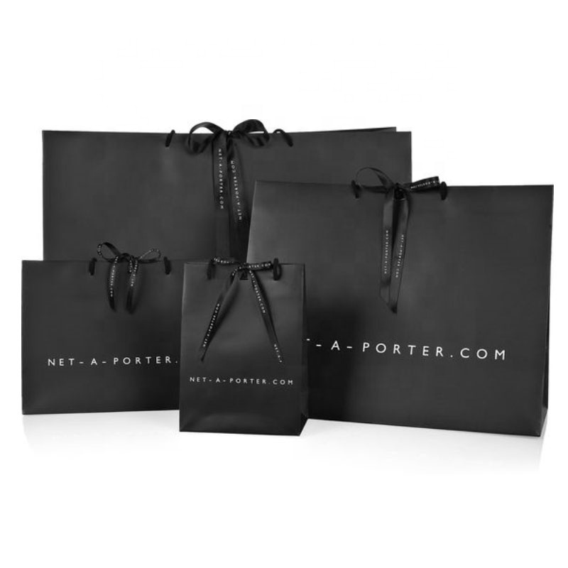 Borsa da Shopping Boutique di lusso in carta regalo per gioielli in carta nera personalizzata borsa per imballaggio abbigliamento di marca personalizzata nero opaco