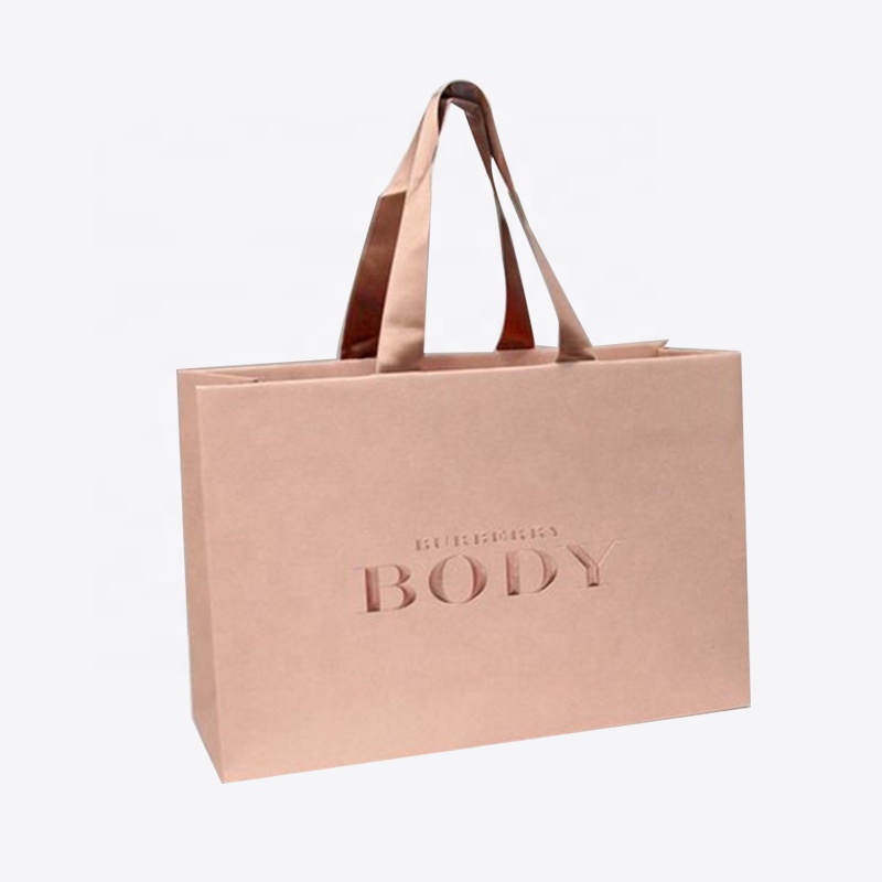 Produzione di sacchetti di carta artistica rosa borsa per la spesa cosmetica regalo di gioielli di lusso personalizzati con stampa Logo personalizzata